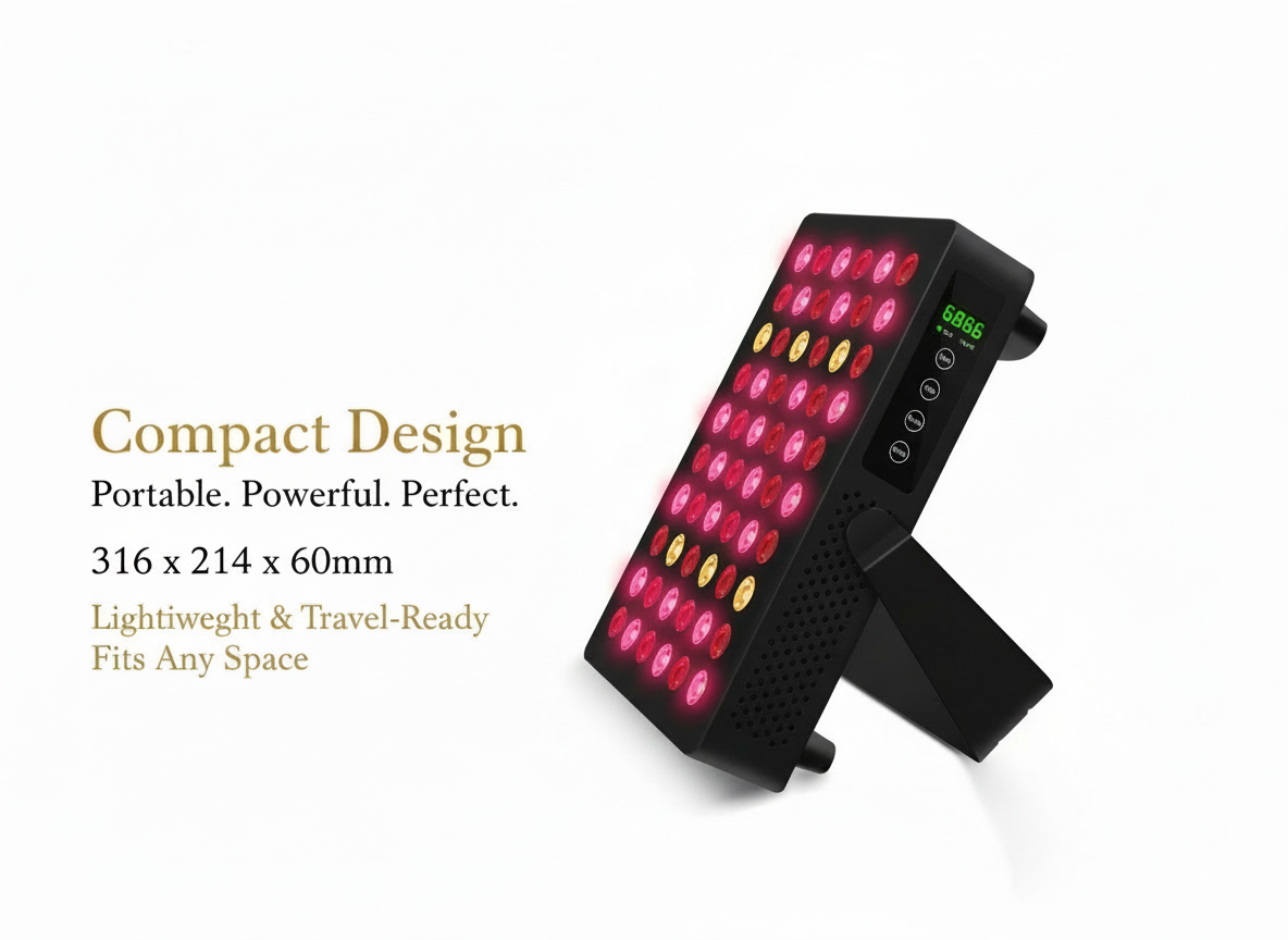 The Medi-Glow Mini is your gateway to clinical-grade red light therapy. With 60 LEDs delivering dual-wavelength technology, this compact powerhouse combines portability with proven therapeutic benefits. Designed for those beginning their wellness journey or seeking travel-ready recovery, the Mini offers professional-grade results in an elegant, minimalist format.